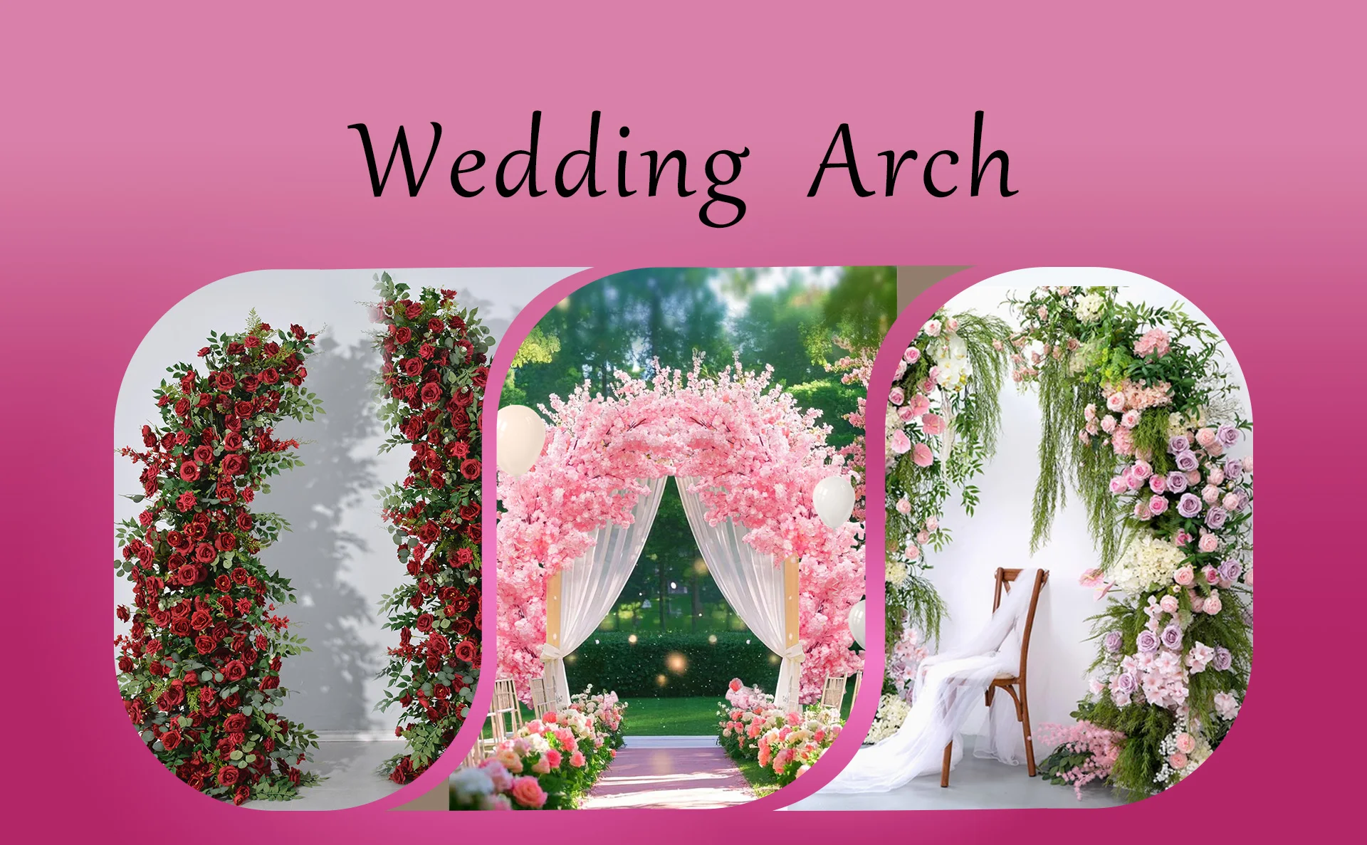 Suministro profesional Flores y plantas artificiales Arco de decoración de entrada de boda